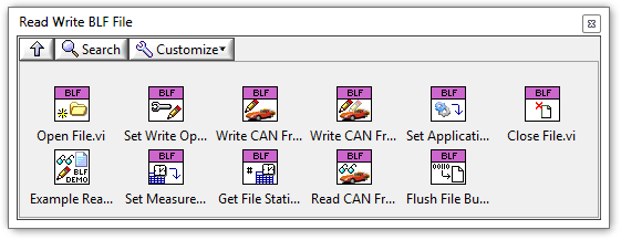 NI has their standard for logging CAN data to a TDMS, but since TDMS files aren't as common outside of NI software, another option is the BLF file. BLF is a file format primarily used by Vector and their CANalyzer software. CANalyzer has the ability to log, and replay BLF files which is a binary file, in a custom Vector format that is partially documented. Luckily Vector also provides a Windows 32 bit DLL for reading and writing to BLF files. Because the format is more closed there aren't as many features of the BLF API. Still with the API you can perform writing operations, as well as reading N frames from a given offset.With both APIs sharing some of the same functionality, there are a couple of included examples that allow for converting from one format to the other. This is just a read from one API and a write to the next. This means that other software tools like CANalyzer can be used to process CAN data read by LabVIEW. This also means that CAN logs created by CANalyzer can be converted and then processed by software written in LabVIEW.